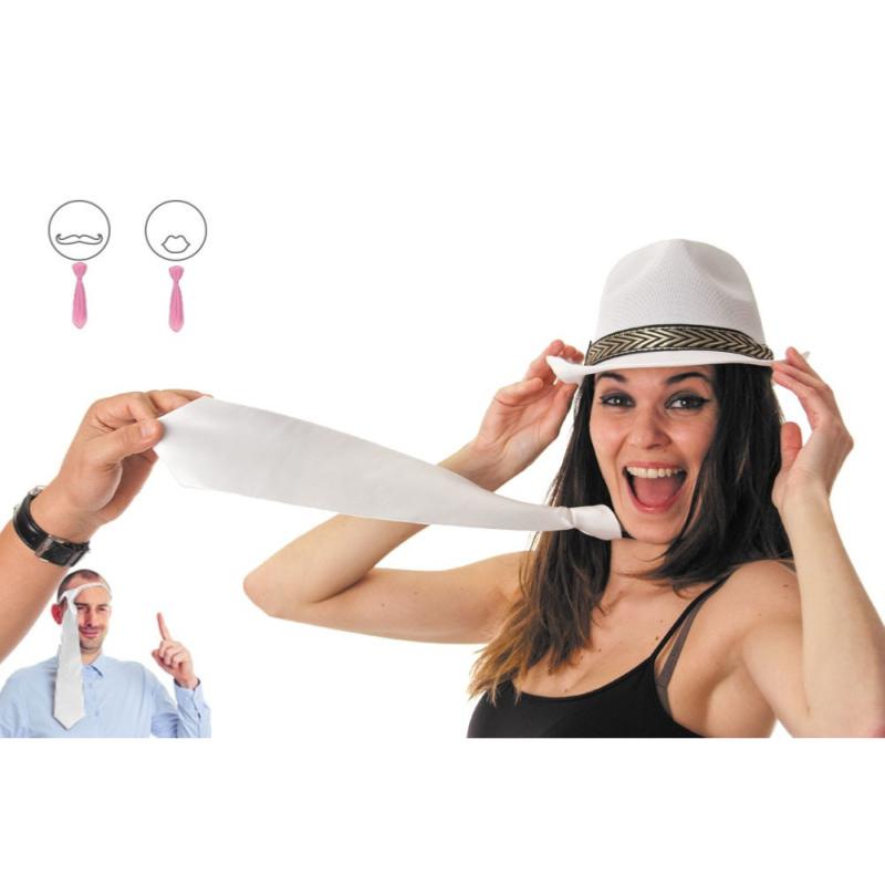 Cette cravate blanche est 100% polyester. Elle est réglable grâce à sa tirette.