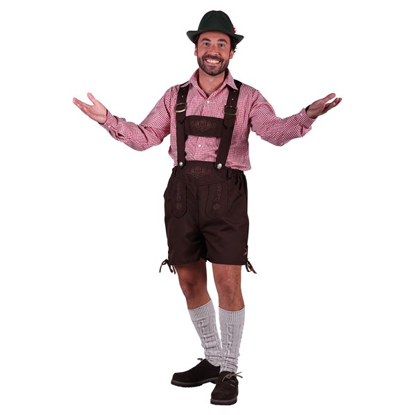 Ce déguisement de Tyrolien comprend la salopette courte avec les bretelles réglables et la chemise à carreaux rouge et blanc 100% polyester. Taille L (44).