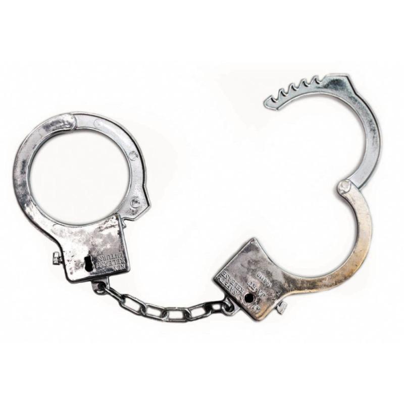 Ces menottes sont métallisées et livrées avec une paire de clés, pour compléter les costumes de policier, bagnard etc