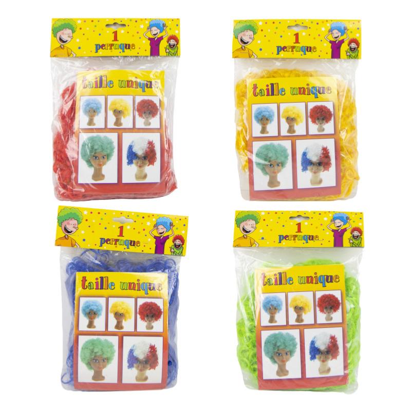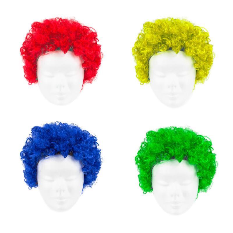 Cette perruque frisée est disponible en 4 coloris différents . Elles ont un filet en élastique à l'intérieur pour s'adapter à tous les tours de tête.