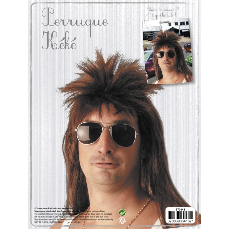Cette magnifique perruque châtain, longue dans le cou et hérissée sur le dessus est parfaite pour un bon look bien 90's.